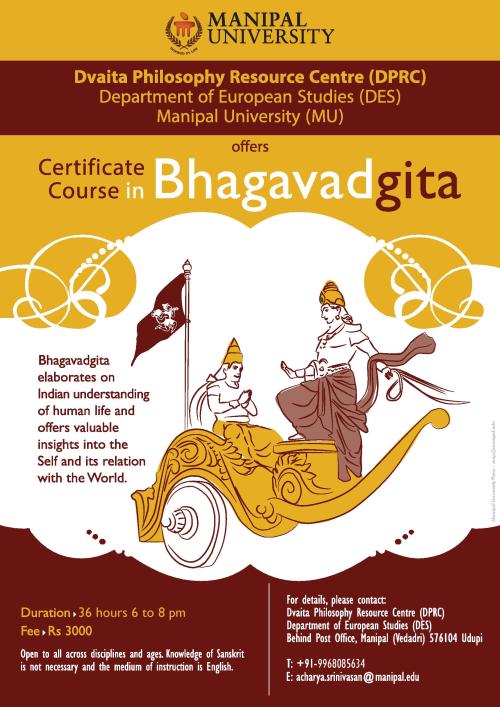 Acharya Madhva, the recent among the three major philosophical thinkers of India has written two detailed expositions on Gita detailing and addressing several philosophical questions raised. He also addresses several questions raised about ethical stances of the principal characters of Indian epics and offers solutions to philosophical conflicts that otherwise arise, which will be looked into during the course. In addition, the course focuses to deal with Gita with an open and analytical approach aiming to understand the tradition of commentaries as well. During the course, other than the Course Instructor, subject experts may be invited to deliver special lectures on various pertinent topics.