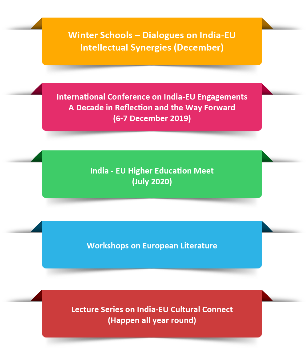 Since its very inception, MCES has been organizing workshops and international conferences on a wide range of topics from intercultural communication to internationalization of higher education to the contemprory issues in India- EU relations. Through CoE we will continue to create opportunities and open platforms for young researchers and academicians to be able to learn, network and have an open dialogue on a wide array of themes.